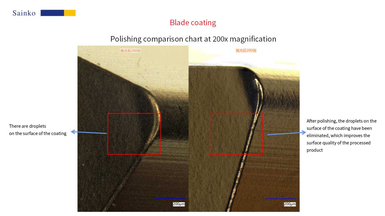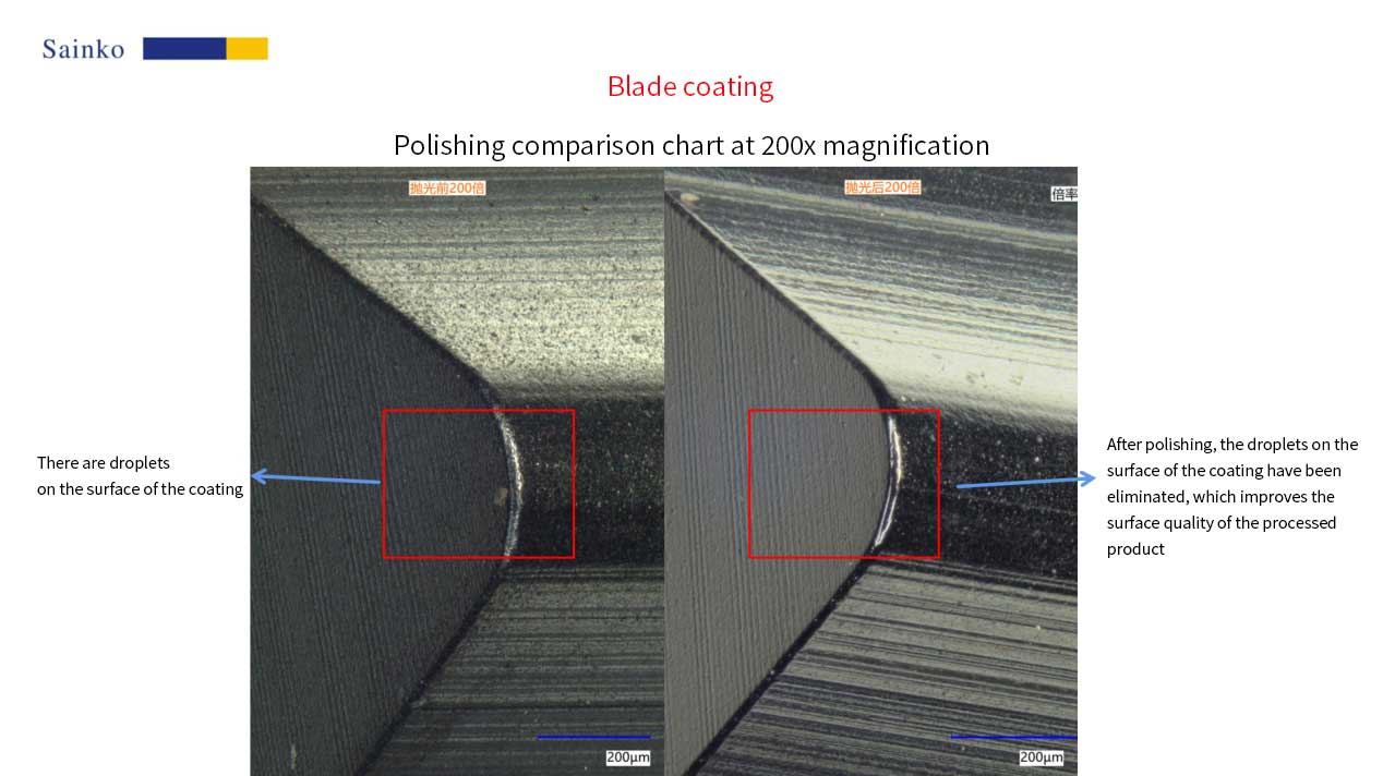 The test samples for this test are two types of cutting blades provided by the customer, each consisting of 5 pieces. The core requirement is coating and polishing treatment. Our company uses PL-12C equipment and 15000-L type abrasive for processing, achieving droplet removal on the coating surface and effectively improving the surface quality of the product. The specific test results are detailed in this report.